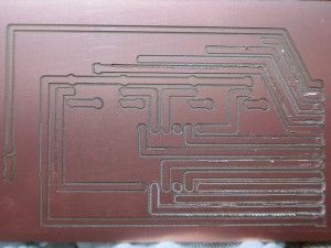 の中央に写っている部分です。線幅1ミリで深さ0.1ミリにしています。 (彫刻Vカッター0.24使用) DIPのピッチでしたら何とか使えそうです。 これ以上の剛性を求めようとするならば、リニアシャフトを追加するしかありません。やりませんけど。