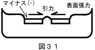 水面に浮かぶ一円玉を考えます。水面を窪ませた状態で浮いた一円玉をマイナスの状態とします。一円玉2枚を浮かべると互いに引き寄せ合います。 次に、アルミホイルを浮かべます。アルミホイルは自身の表面張力によって、水面をほんのわずか引き上げます。これをプラスの状態とします。