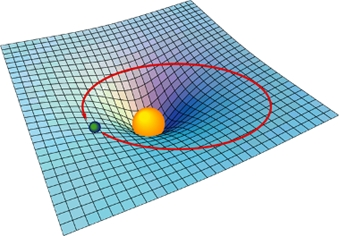 重力について、相対性理論では時空の歪み、あるいは質量が原因で時空が歪むと説明されています。